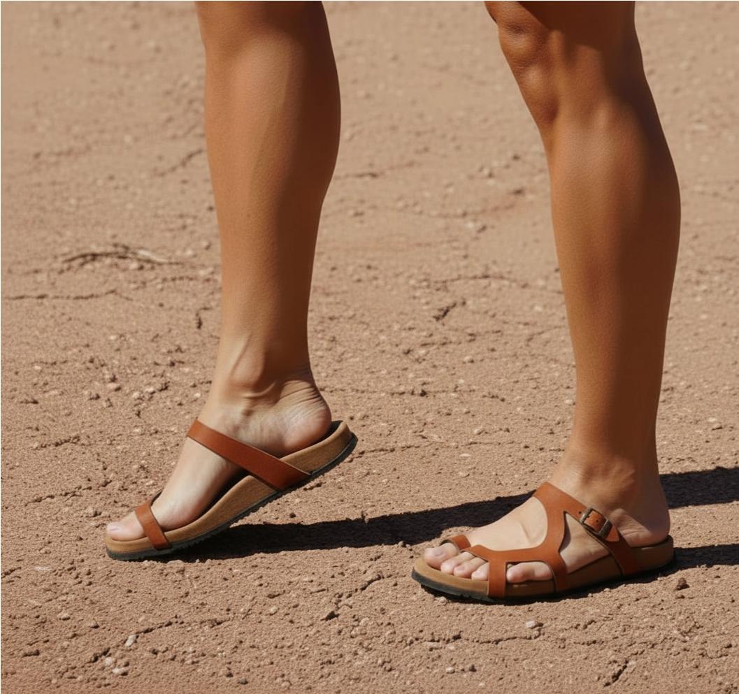 SISTEMA BIOFLEX, PLANTA ANATOMICA Y SUELA VIBRAM Edera, Modelo Luna Camel, sandalias veganas, calzado vegano.