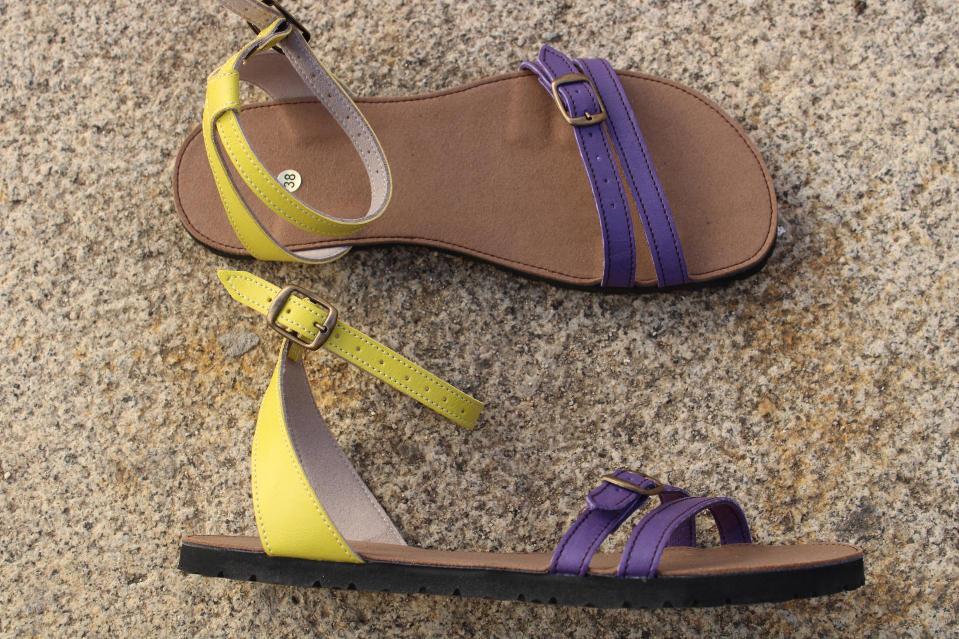 EMILY, COMBINACION COLORES, MORADO Y AMARILLO.- TRANSICION HACIA BAREFOOT DE 1CM DE GROSOR SUELAS EVA - EDICIÓN LIMITADA