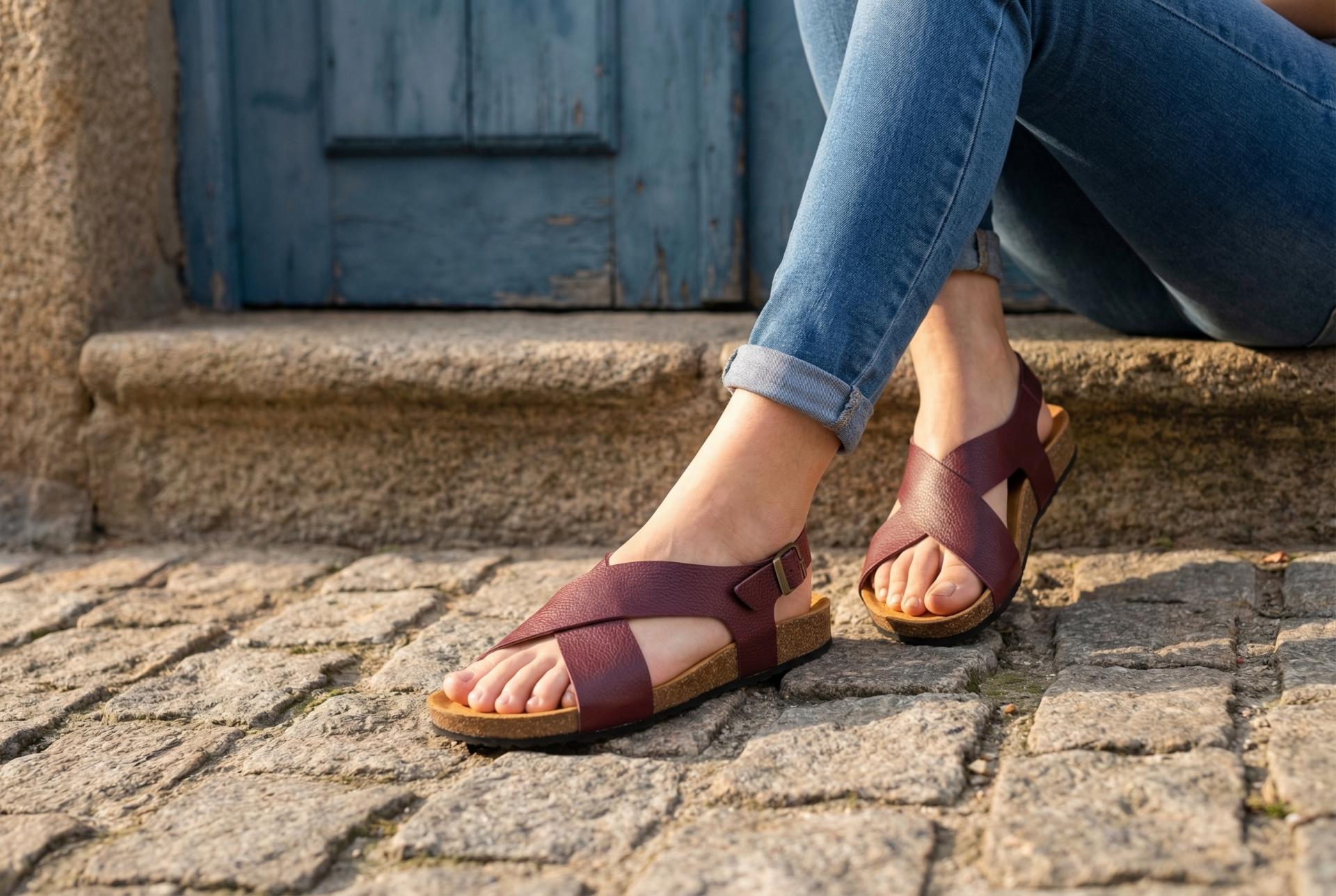 ANATÓMICA, MEXICO color Burdeos, sandalias para mujer, sandalias veganas, eco-friendly, sin productos de origen animal, moda vegana, zapatos sostenibles, calzado ético.