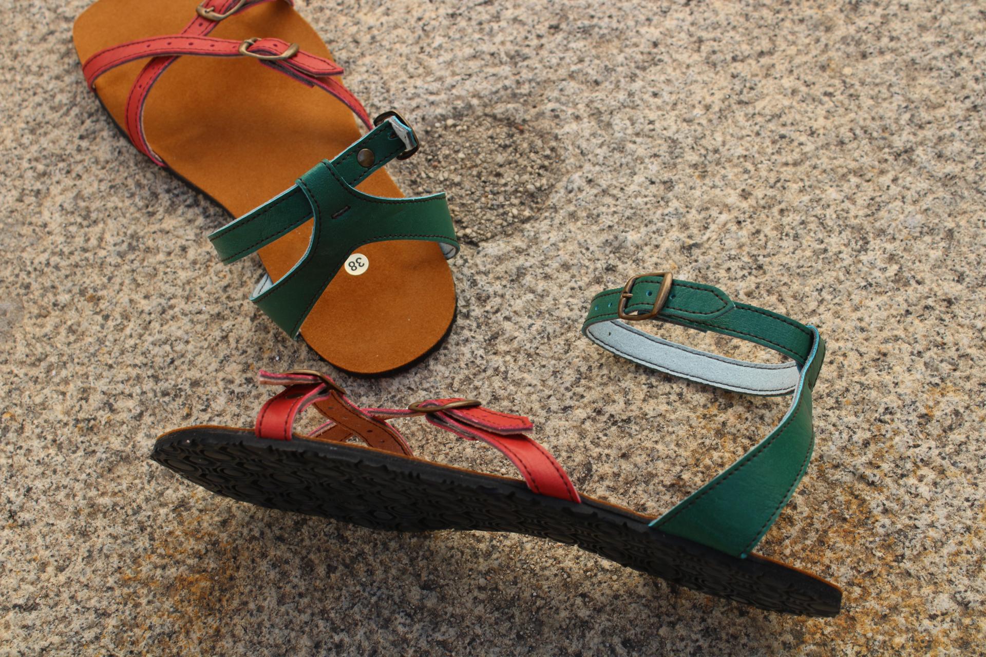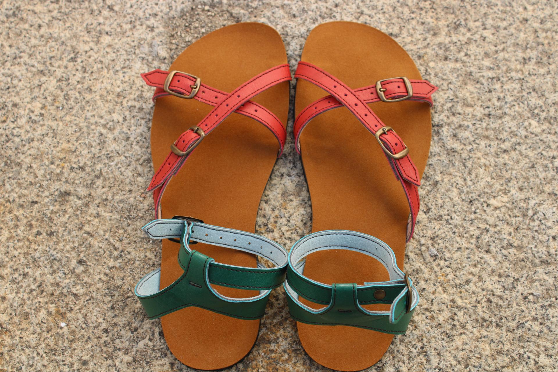 BAREFOOT CAROL, COLORVERDE Y ROJO, sandalias para mujer y hombre, calzado descalzo, sandalias veganas, eco-friendly, barefoot.